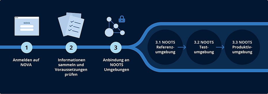 NOVA ist das zentrale Anbindungstool für das NOOTS (Nationales Once-Only-Technical-System) und dient sowohl zur Registrierung von anzubindenden Teilnehmenden als auch zur automatisierten Weiterverarbeitung der Anbindungsdaten – mit dem Ziel eines vollautomatisierten Rollouts.